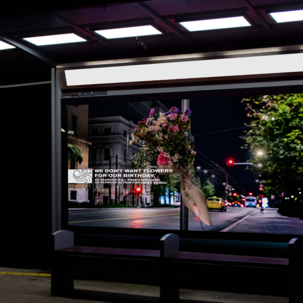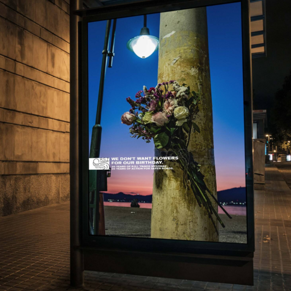 To mark its 20th anniversary, the Road Safety Institute “Panos Mylonas” launched a powerful OOH campaign using bus shelters to confront a tragic reality: flowers left on the roadside to honor victims of traffic accidents. In Greece, this is a common sight—silent memorials that tell stories of lives lost too soon.