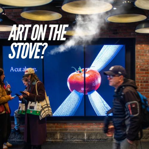 It’s a digital out-of-home activation in New York City that showcases HexClad cookware through minimalist, premium visuals at Chelsea Market and Brookfield Place.