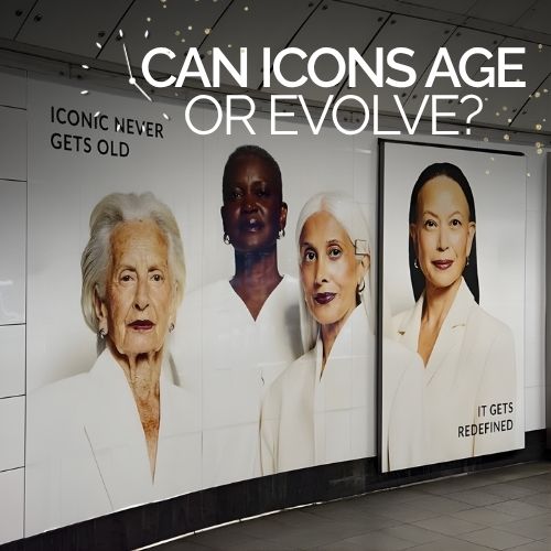 Its minimal design, real representation of women, and bold tagline ‘Iconic Never Gets Old’ make it both visually striking and emotionally resonant.