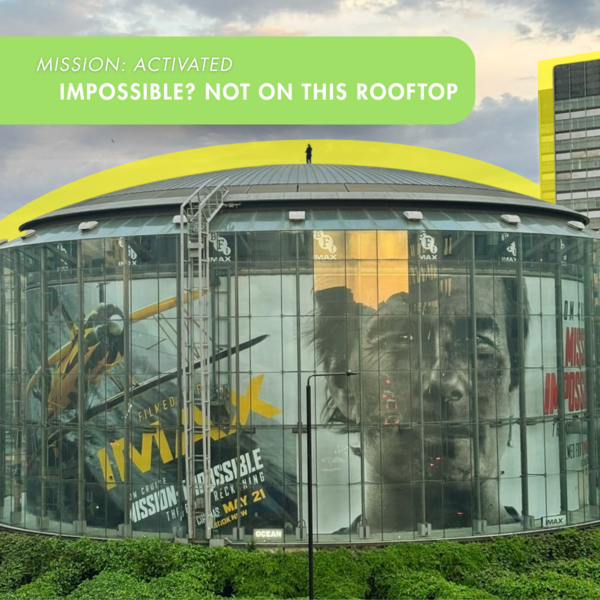 Tom Cruise appears atop BFI IMAX London, turning a billboard into a viral rooftop stunt for Mission: Impossible – Dead Reckoning.
