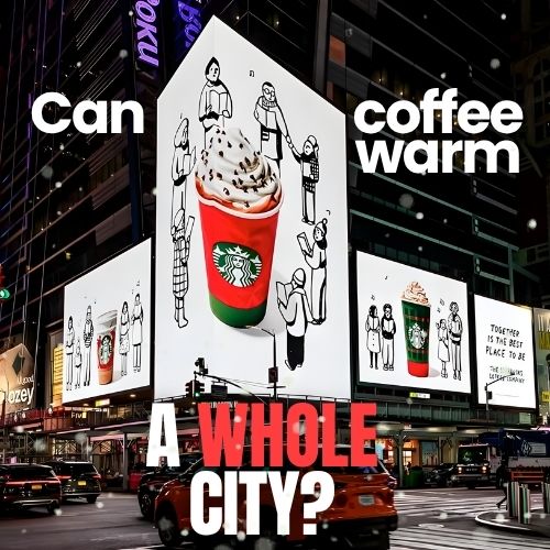The campaign’s headline captures the essence of Starbucks’ message — that beyond coffee, the brand stands for community. It’s a statement that resonates deeply in Times Square, a place where millions of strangers cross paths every year.