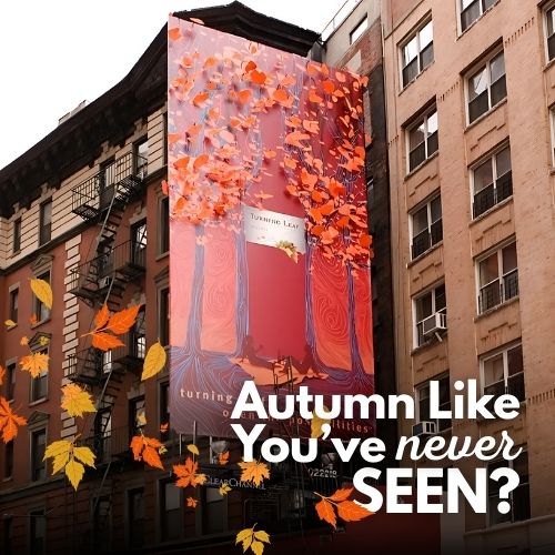 Turning Leaf transformed a New York City wallscape into a striking 3D billboard, bringing autumn to life with cascading leaves and textured layers that turned a static format into an immersive OOH experience.