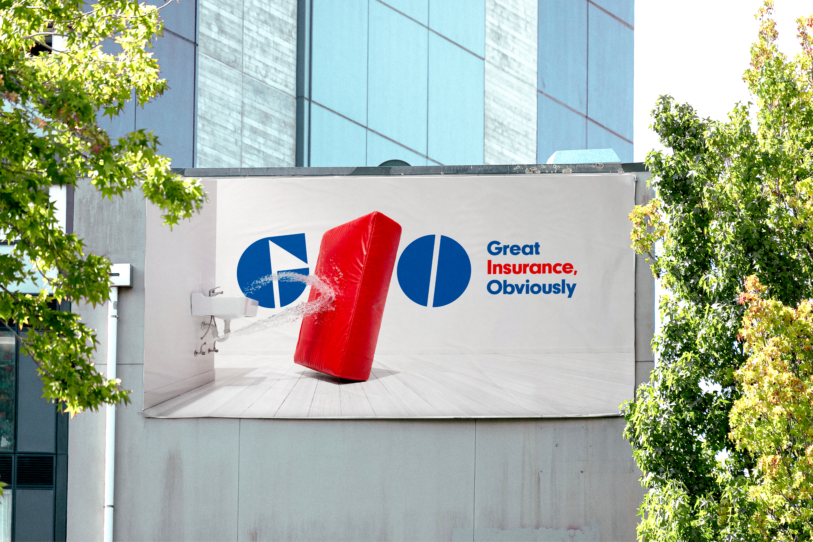 GIO launched the “Great Insurance, Obviously” campaign with Leo Australia, using a safety mat visual metaphor to symbolize protection, reassurance, and confidence in modern insurance advertising.