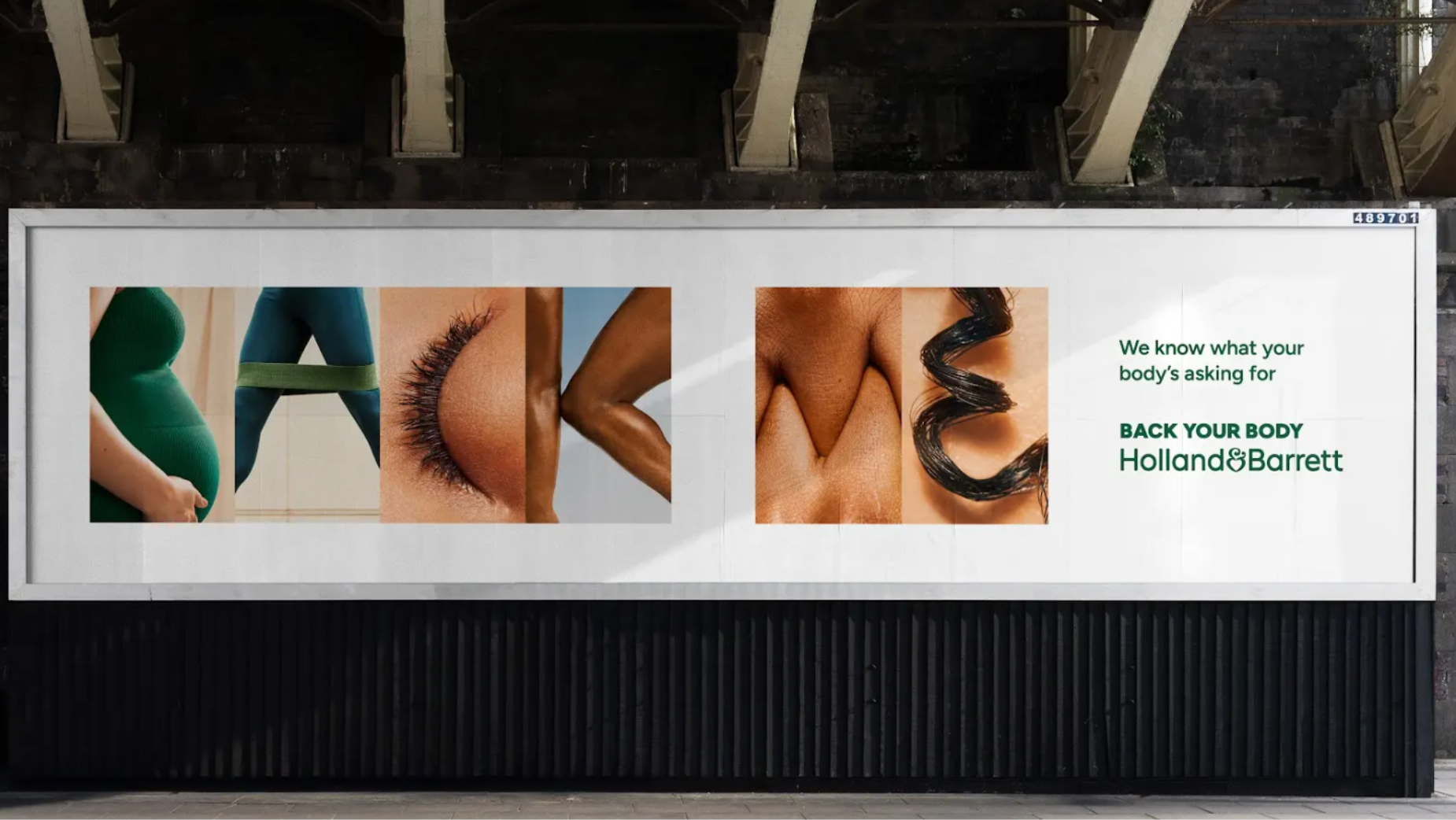 Holland & Barrett’s latest OOH campaign puts the body at the center of the creative to reflect its “Back Your Body” platform. Created by Lucky Generals and shot by The Masons, the work uses body-built typography and honest photography to create a more human and relatable identity.